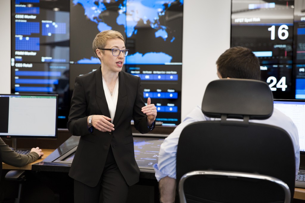 Risk Management Center provides a comprehensive view of the various investment portfolios and how they fit within pre-established guidelines. Built in 2014, its front-end consists of a 27’ by 8’ interactive touchscreen designed to visualize data in ways that allow for rapid comprehension. Its back-end systems, which connect to every office worldwide, continuously run a wide range of operational readiness, risk, and stress test monitors.